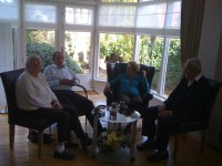 Op zondag 4 oktober, een week voor de terugreis, bezochten ze voor het eerst Balgoy. Lekker gezellig in de serre, werden de nodige herinneringen boven tafel gehaald. Ome Gerrit en tante Marietje zijn allebei boven de tachtig, mijn moeder is 79 jaar oud, maar toch is dat nog jong vergeleken met nummer vier op de foto beneden. Harrie Jans, mijn schoonvader, werd 19 september 97 jaar………..
