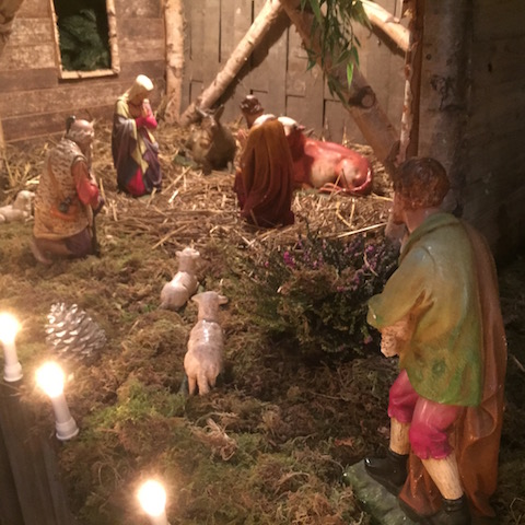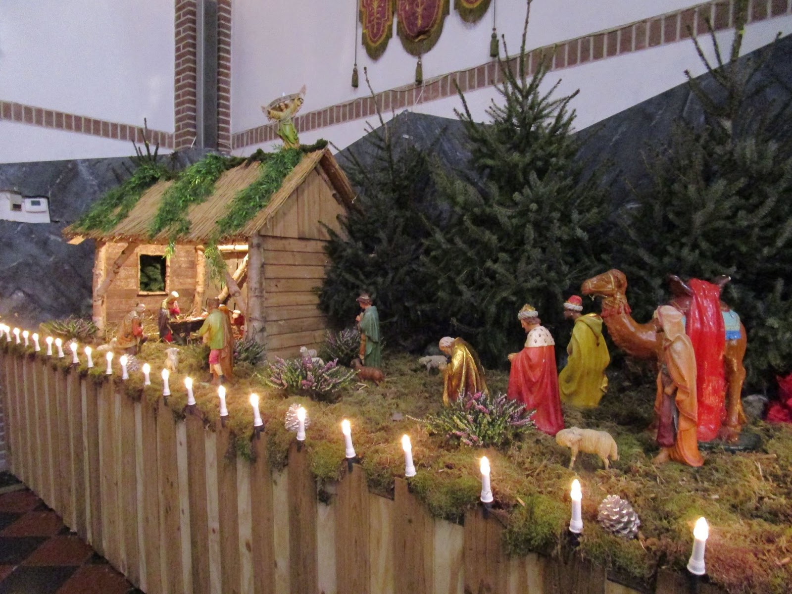 De mooie kerststal voor in de kerk is dan een blikvanger. Traditioneel gebouwd en ingericht door Theo Willems, geholpen door Jan Reijnen en door de kerkhofwerkers. Het is ook traditie dat Theo tijdens de viering op kerstavond het kerstkind de kerk binnendraagt en in de kerststal plaatst. Een mooie kerststal met een mooie beeldengroep, die er al is zolang als we ons kunnen herinneren. Hoe lang precies? Dat weten we niet zeker. Komt de beeldengroep nog uit de oude kerk? Sommigen beweren van wel, maar dat lijkt niet waarschijnlijk.