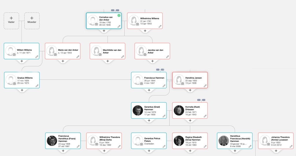 Gradus Willems was de zoon van Willem Willems en Maria van den Anker. De vader van Maria van den Anker, Cornelius van den Anker woonde ook in de boerderij waar later de familie Hammen woonde. Dat is te vinden in het minuutplan van den Holdschen Hoek uit die periode. Met behulp van de OAT-bladen kunnen we vaststellen wie er in de boerderijen woonden. In de Steeg (nu Houtsestraat) woonde op Het Hold, kadastraal nr. 26 Jacob de Bruijn (landbouwer), verder op de hoek, kadastraal nr. 32 Sebilla Loeffen (doorgestreept Francis Loeffen, landbouwer) en dan naar het oosten kadastraal nr. 70 Cornelis van den Anker (bouwman).