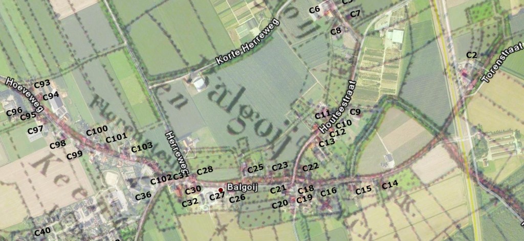 De interesse in de familie Kersten gaat verder dan alleen het verhaal hierboven. De naam Kersten komt ook voor in de eigen familie. De oma van mijn echtgenote Ans Jans was Hanna Kersten. De gemeenschappelijke link tussen Hanna en Harrie Kersten is Christianus Kersten, geboren in 1792 te Wijchen. Zijn zoon Petrus trouwde in bij de familie van Luenen (wijknummer C13 in Balgoy) en een andere zoon Hendricus Kersten trouwde met Elisabeth de Bruijn. Hendricus Kersten op zijn beurt is ingetrouwd bij zijn schoonvader Arnoldus de Bruijn. Hendricus Kersten en Elisabeth de Bruijn trouwen in Balgoy op 28 april 1876. Dit verhaal is ook al eerder opgeschreven (Hanna Kersten trouwt met Piet Jans uit Escharen – over burgemeesters en gemeentesecretarissen | Piet’s Blog: Balgoyse mins). Het adres nadat Balgoy gemeente Overasselt was geworden in 1923 werd Wijk C nummer 30. Al heel snel veranderde de wijknummering weer en werd het Wijk C nummer 27 (Bron: Bevolkingsregister gemeente Overasselt 1924 – 1931). C27 is terug te vinden op het kaartje van Balgoy met wijknummers uit 1931. Nu is de straatnaam Torenstraat, maar de boerderij staat er sinds 2023 niet meer. Meer dan twee eeuwen lang werd er geboerd op die plek in het centrum van Balgoy. Op die bijzondere plek midden in Balgoy prijken nu zes nieuwe huizen – twee speciaal ontworpen voor senioren en vier twee-onder-één-kap-woningen (Boerderij in centrum van Balgoy maakt na meer dan twee eeuwen plaats voor zes woningen | Piet’s Blog: Balgoyse mins).