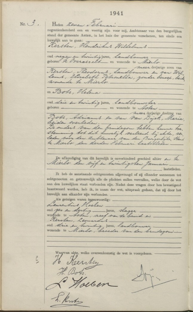 Burgerlijke Stand Huwelijk, gemeente Asten 1941.