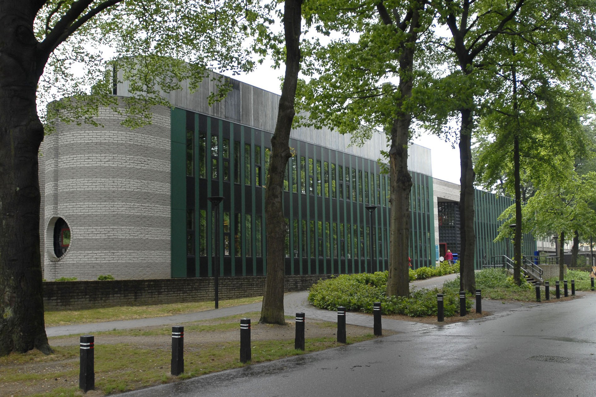 De wandelaar die vanaf het Nijmeegse station de Javastraat inslaat, ontmoet op de hoek van deze met meidoorn beplante allee een vreemd conglomeraat van bouwsels. Om een in het begin der eeuw in een soort Jugendstil gebouwd landhuis strekken zich enkele vleugels uit, die naar de westkant overgaan in een souterrain. Is onze wandelaar enigszins bereisd, dan zal hem ongetwijfeld de overeenkomst met de stad New York en speciaal Manhattan opvallen. Daar, zoals hier een organisch gegroeide eenheid die uit zeer verschillende elementen is opgebouwd. De grijze ernst der grote granietblokken wordt enigszins verlicht door speelse elementen in de architraven. Een fraai contrast levert de fietsenbergplaats aan de noordzijde van het complex met de grote verzinkte vuilnisbakken aan de zuidkant van het toegangsplein. Hier verheffen zich twee pylonen als hommage aan de ontdekkers van het DNA, Watson en Crick. Men zou hen kunnen zien als het hart van het geheel, waren zij niet zo ongenaakbaar.