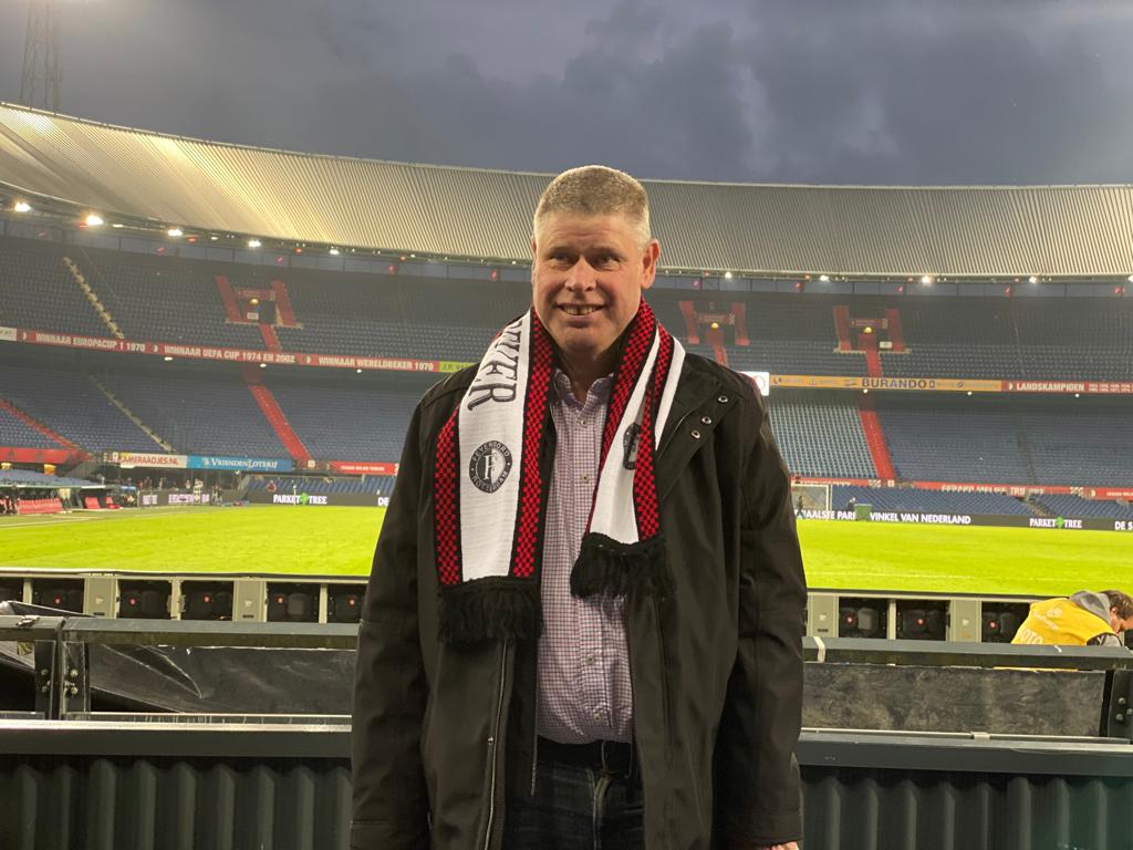 Theo, Diosa- en Feyenoordsupporter in hart en nieren. Hier in het cafe van Teun en Sjan van Haren.