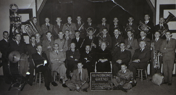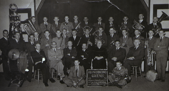 Federaal Muziekconcours Groenlo 1952 – eerste prijs in de ereafdeling harmonie. Voor: Piet Dinnissen, Gerard Overman. Zittend: Wim Willems, Harrie Willems, Wim Verhoeven, burgemeester van Hugenpoth tot Aerdt, pastoor Aarts, Jan Verhoeven en Marte van Haren. Staande: Miem de Valk, Gerard Overman, Nol van Haren, Jan de Bruin, Jan van Haren, Harry Jansen, Koos Dinnissen, Ermert de Valk, Koos Wintjes, Jo Willems, The Berben, Harrie Jans, Jan Willems, Wim Berben en Jan Overman. Achteraan: Chris van Haren, Koos Hulsman, Jan Wintjes, Tinie van Haren, Gerard de Valk, Joske van Haren, Frans Berben, Toon van Haren, The van Beuningen, Jan Driessen en Bernard Groenen.