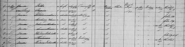 Deel van blad 58 van het Bevolkingsregister Overasselt 1890-1900. Het gezin van Peter Jansen en Regina van Raaij woonden in Ewijk Dorp op nr 40. Ze woonden daar vanaf 9 mei 1896 en op 24 mei 1898 zijn ze vertrokken naar “Hochthal”.
