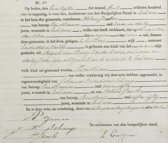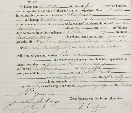 Hent werd als achtste kind van het gezin geboren op 19 april 1894 in Escharen. (Bron: boek BS Escharen, Deel: 2396, Periode: 1894, Geboorteregister Escharen 1894)