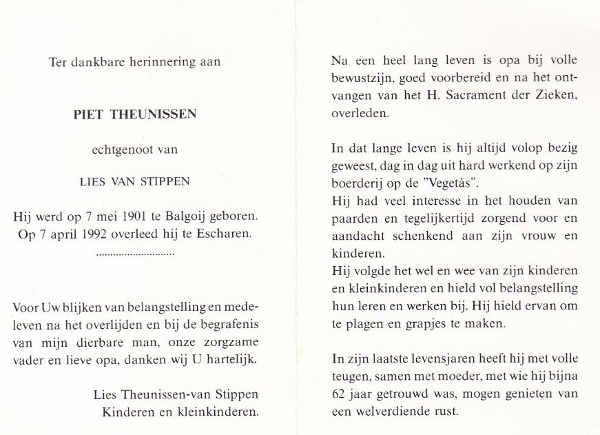De jongste zoon van Grad Hammen en Keetje Driessen, Hendrikus Franciscus (roepnaam Hendrik), geboren op 16 januari 1912, groeit op op de boerderij. Hij zal het bedrijf later overnemen en er zijn hele werkzame leven blijven wonen en werken. Hendrik trouwt met Annie Lucassen uit Escharen, en samen krijgen zij maar liefst veertien kinderen. Een groot gezin dat opgroeit op de boerderij — tussen het vee, de akkers en het ritme van de seizoenen.