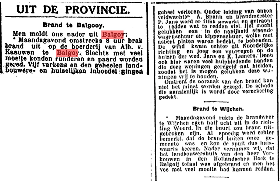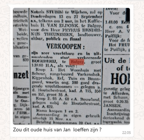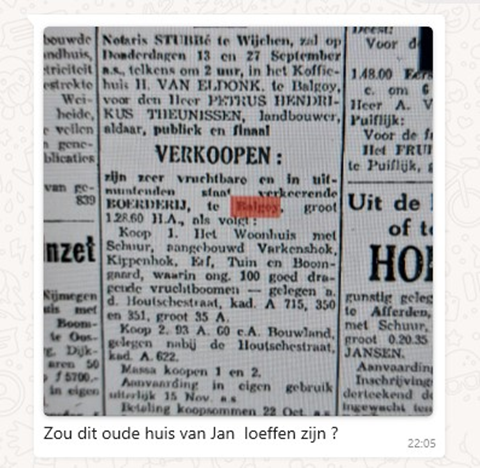 In november 1925 verandert alles. Op 27 november worden Fons en zijn zus uitgeschreven uit de gemeente Overasselt en vertrekken ze naar Nijmegen. Gradus Broeren moest daarom ook verhuizen en ging inwonen bij klompenmaker Nicolaas (Klaasje) van der Linden, die in het oude protestantse kerkje woonde (Wijk C 14 in Balgoy). De boerderij wordt verkocht via een veiling aan Gerardus (Grad) Hammen, geboren op 14 mei 1876 in Balgoy. Samen met zijn vrouw Kornelia (Keetje) Driessen (geb. Nederasselt, 1871) en hun drie kinderen – Franciscus Hendrikus, geb. 23 augustus 1908 in Balgoy, Regina Elisabeth, geb. 18 juni 1910 in Balgoy en Hendrikus Franciscus, geb. 16 januari 1912 in Balgoy – woonde hij tot dan toe aan de Houtsestraat, in de Holtschehoek (Frans Hammen, een boerenknecht uit Reek trouwt in de 19e eeuw in Balgoy. | Piet’s Blog: Balgoyse mins).