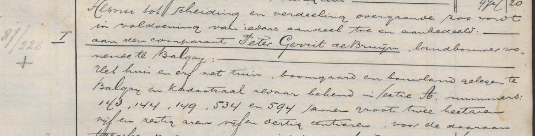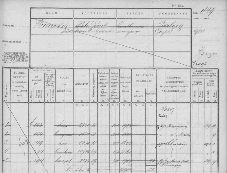 Als Peter Gerrit de Bruijn Floresteijn erft van de erven van Jacobs van Haren, waaronder zijn vrouw Maria, wordt de boerderij deels gesloopt en vernieuwd kan uit het kadaster worden opgemaakt (Balgoy, leggerartikel 849, dienstjaar 1895). In 1896, hij is dan pas 46 jaar oud, overlijdt Peter Gerrit de Bruijn. Zijn oudste zoon Leonardus Gerardus, die dan net 21 jaar is, wordt eigenaar, gezinshoofd van Florensteijn volgens kadaster en bevolkingsregister.