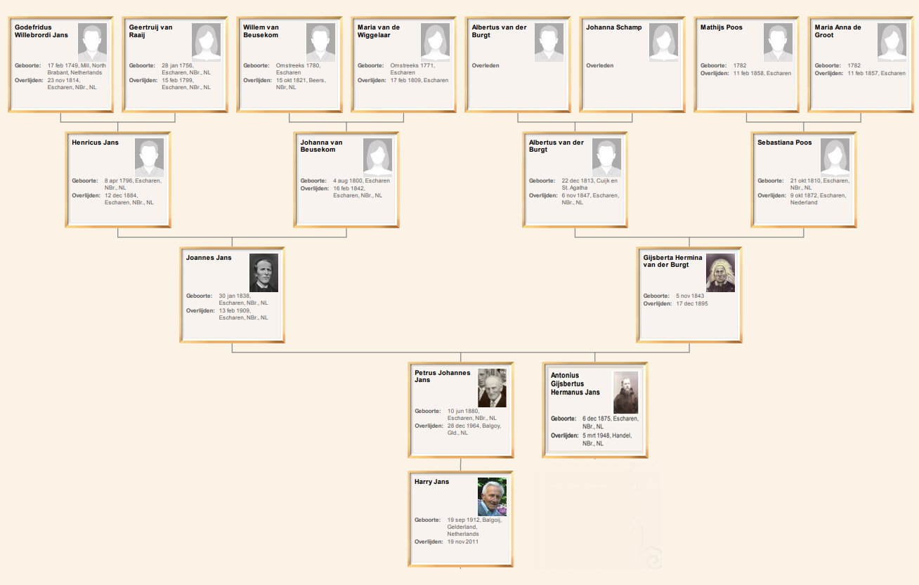 Met behulp van WieWasWie (https://www.wiewaswie.nl/) kunnen we een afstammingsreeks van de bewoners van de boerderij maken van Frans Jans terug in de tijd die uitkomt bij Henrica Paulissen. Een afstammingsreeks toont via welke lijnen iemand afstamt van één van de voorouders. In tegenstelling tot een stam- of moederreeks volg je dan niet continu de rechte mannelijke of rechte vrouwelijke lijn, maar in dit geval blijf je wel op dezelfde boerderij.