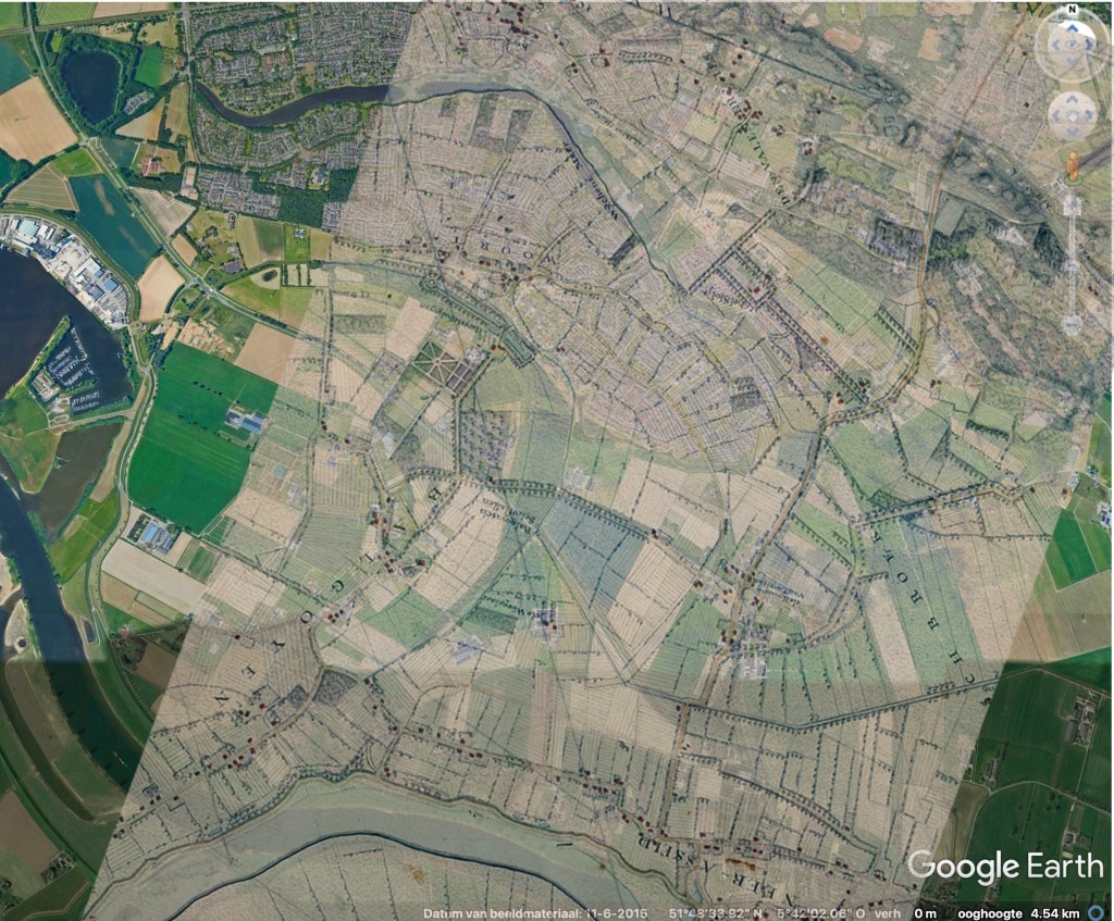 Figuur 1. Meanderende Maas (tekening: Werner Peters)