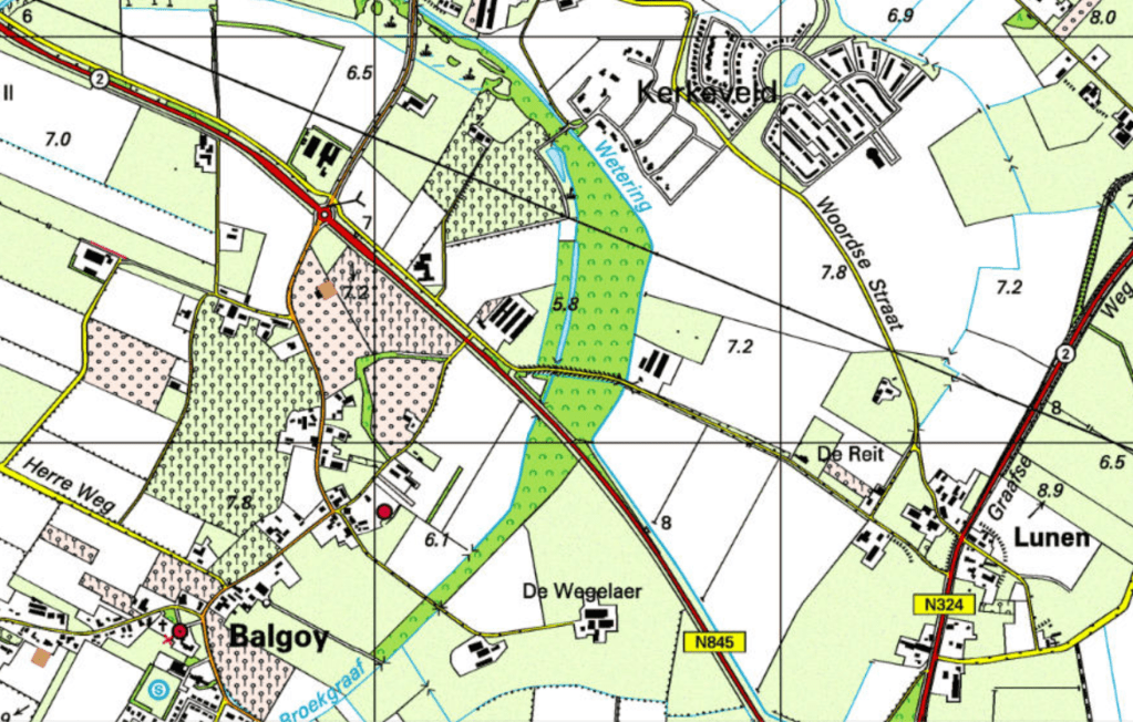 Natuurlijk ben ik nieuwsgierig naar nog meer (historische) informatie over deze mooie rustige nieuwe woonplek en de eventuele verbinding van deze plek met Balgoy. Van boerderij de Gamert aan de westkant van Kerkeveld weten we dat de laatste agrariër die er heeft gewoond (dus voordat oud-raadslid Rob Engels de boerderij kocht in 1995) wortels had in Keent (Tweestromenland, nummer 88 uit 1996). Zijn naam was Lambertus Broeren, zoon van Huub Broeren uit Keent en Pieta Sengers uit Wijchen. Lambertus breidde de Gamert uit van ongeveer 31 tot 42 ha. Dit was met name uitbreiding met gronden die oorspronkelijk bij het Balgoysch kasteel behoorden. De gemeente Wijchen betaalde in 1994 ongeveer 6 miljoen gulden voor de Gamert. De grond werd, behalve voor het woonhuis met het bijbehorende erf (ongeveer 2000 m2) gebruikt voor het realiseren van bouwplannen in Kerkeveld.