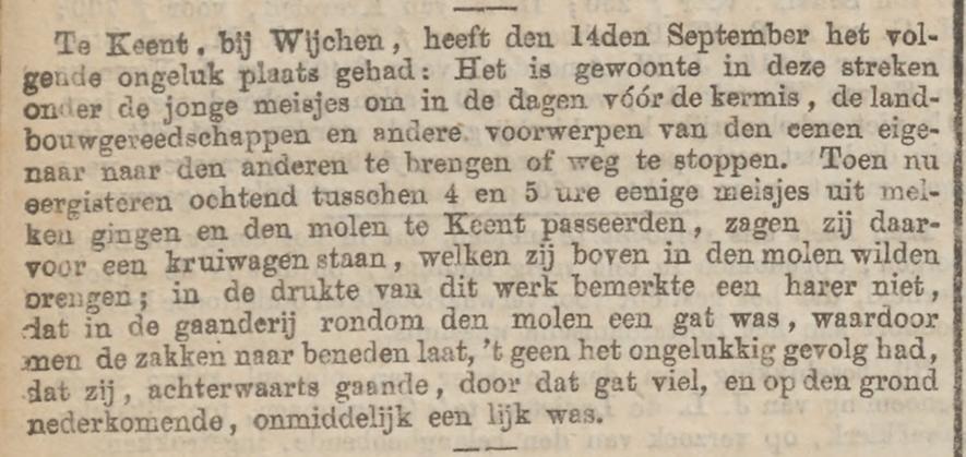 Ik ben ook veel vriendinnetjes kwijtgeraakt door de nieuw gegraven rivier, want de kinderen uit Keent gingen in Overlangel naar school of ze waren verhuisd. Nellie Haerkmans ging naar Malden; Lieske Pfeffer naar Kerkdriel; die van de Bruin naar Wychen; mijn latere man Frans Stevens was al naar de Huurling verhuisd; de familie Gerrits ging naar Niftrik. Het hoofd der school was daar erg blij mee, omdat zij zoveel kinderen hadden, kon de school blijven bestaan! Zo zie je maar. Was getekend, Nellie Stevens-Hulsman.