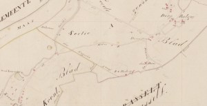 Detail kaart van het rivierengebied met molen in Keent, Blaeu ca. 1630 (Bron: infobord molen Keent – Henk Buijks)