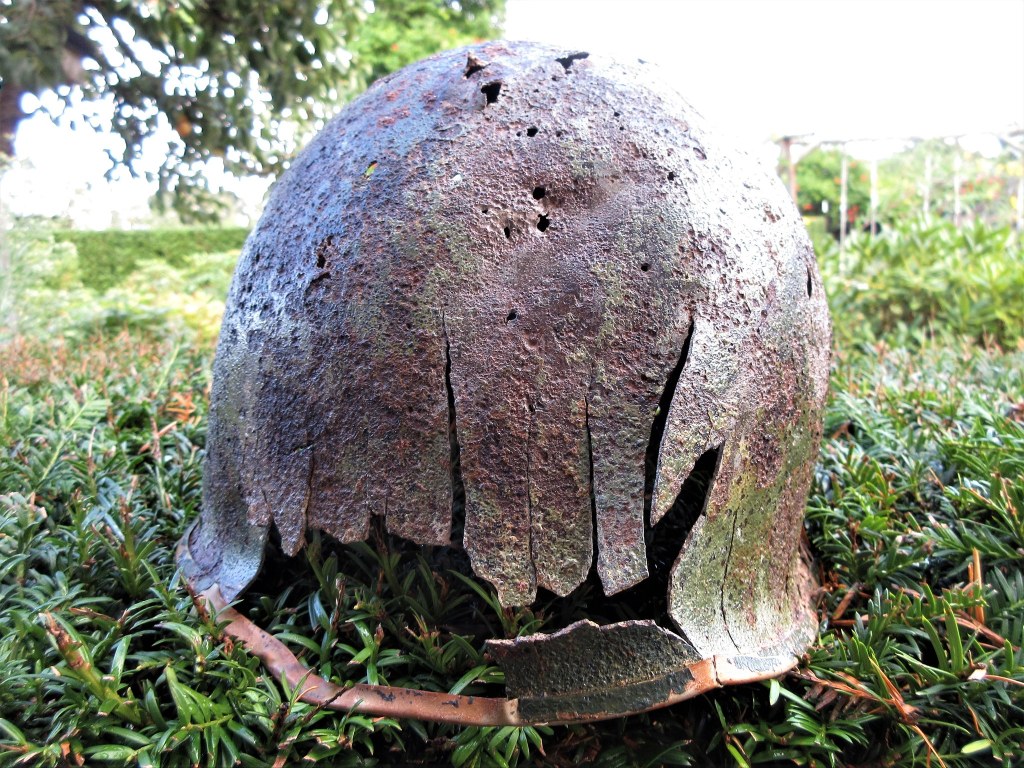 Deze helm heeft met de inslag en door zijn verblijf in de grond veel geleden. Maar net als vele andere voorwerpen kan hij een groots verhaal vertellen, ons doen inzien wat de prijs van vrede is en hoe dankbaar we moeten blijven voor die vrede. Dat doe je het beste door te herdenken en gisteren heb ik al vele vliegtuigen over zien komen die die herdenkingen tastbaar maken….