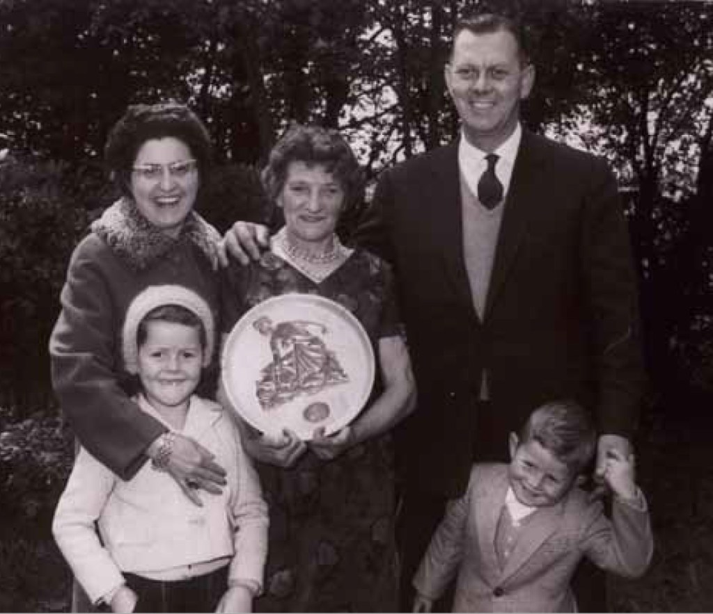 Johny Johnstone met vrouw en kinderen in 1961 tijdens zijn bezoek aan Nederland. In het midden Grada van Zummeren (bron: het boek ‘Vijftig klurre Bèrgs’)